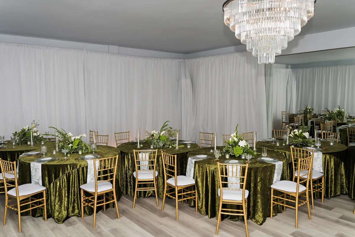 We’ll decorate the Ballroom and Courtyard, handle the seating, string the lights, and bring the sparkle.